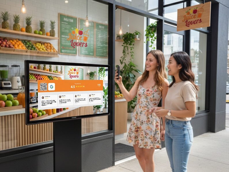 Your Google reviews are the most powerful trust signal you have — but they’re invisible once customers enter your store. Digital signage changes that.