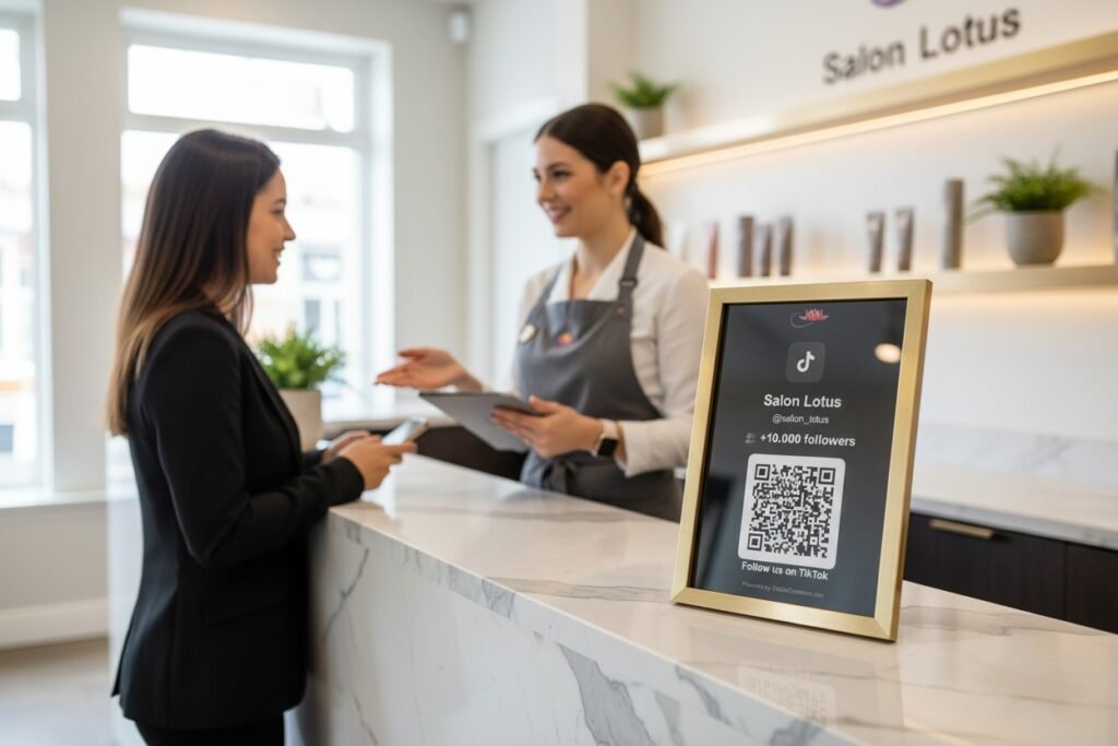 A QR code at your checkout counter. A display showing your live follower count. Small changes that compound over time.