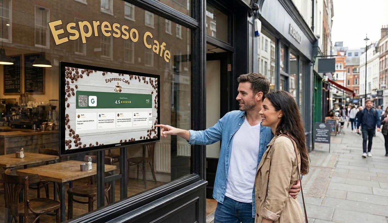 When customers see “4.8 stars from 180 reviews” on a sign or screen, they think two things: