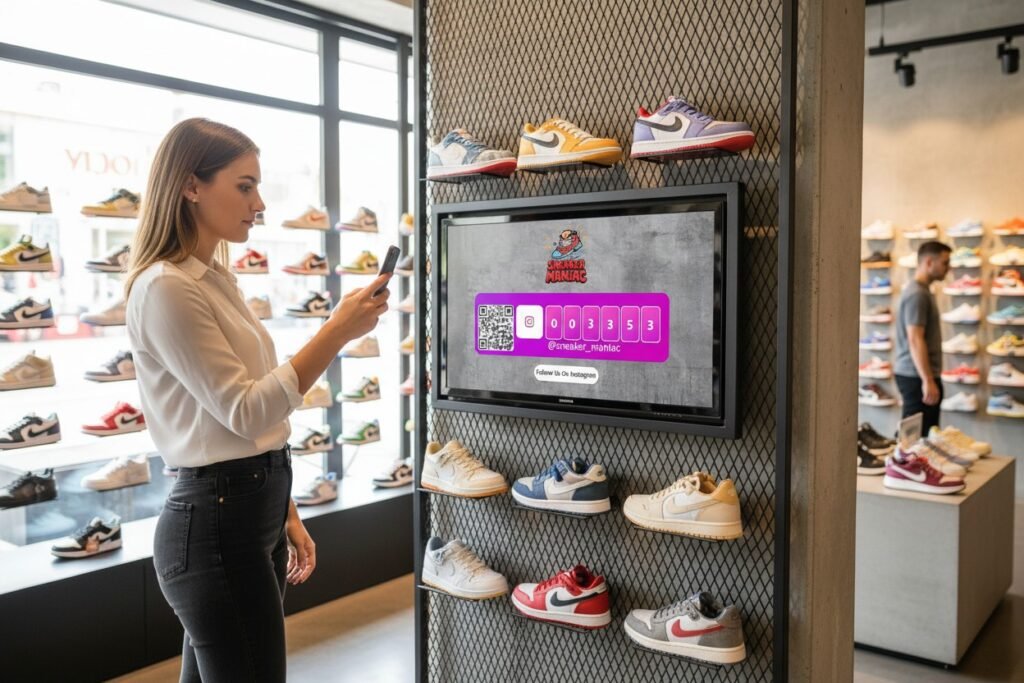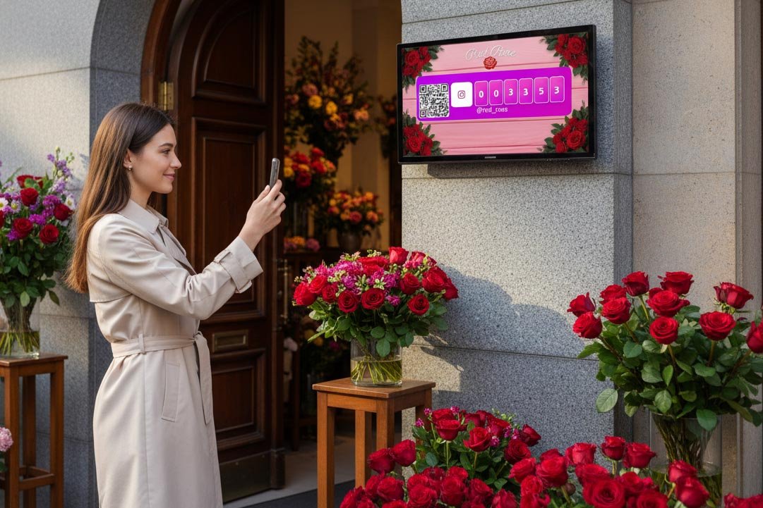 Tools like Social Counters let you display a live follower count on a tablet or screen, with a QR code right there for people to scan and follow. Customers see the number ticking up, see how easy it is, and join in.