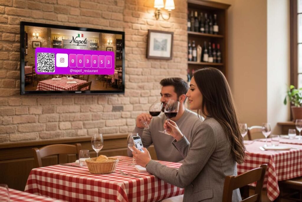 Think about it: someone walks past your restaurant every day on their commute. They’ve thought about trying it but never have. One day they notice your follower counter, scan the QR code, and follow your Instagram. A week later they see your post about a new seasonal menu. That night, they finally walk in.