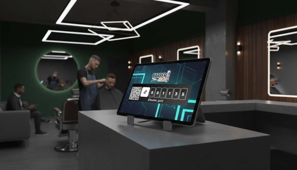 A social media follower counter displays your real-time follower counts on a screen in your business. It shows Instagram, TikTok, YouTube, and Facebook — complete with QR codes so customers can follow you on the spot.